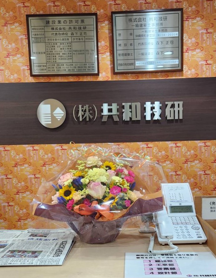 そんな中、いつもお世話になっている会社さんから、社長あてにきれいなお花をいただきました。 色とりどりのお花に、社内もパッと明るくなって、ちょっと暑さも和らいだような気がします。